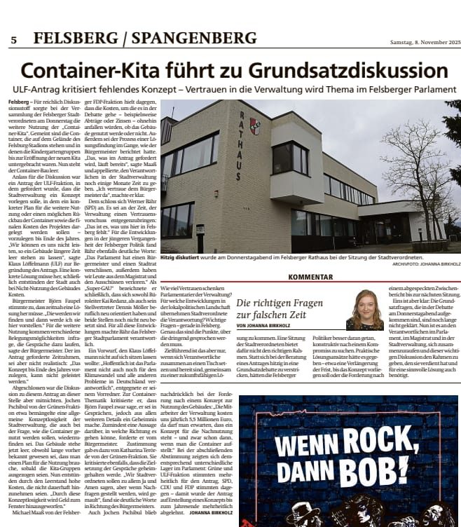 Die Grünen Felsberg haben damals als einzige Fraktion Bedenken geäußert und gegen die Verlagerung des Ordnungsamtes gestimmt – aus guten Gründen